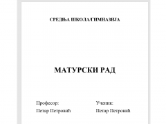 Izrađujemo maturske radove učenicima srednjih škola i gimnazija. Maturske radove izrađuje tim kvalitetnih stručnjaka sa višegodišnjim iskustvom u izradi maturskih radova na tačno zadatu temu. Cena: 1000