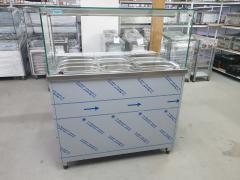 Vitrina za kuvana jela je od prohroma u bazenu su 2 grejaca svaki po 2kw odvojeni posebnim termostatom, struja mono, na sredini bazena kugla ventil za ispustanje vode, donji deo je neutralni. Led rasv