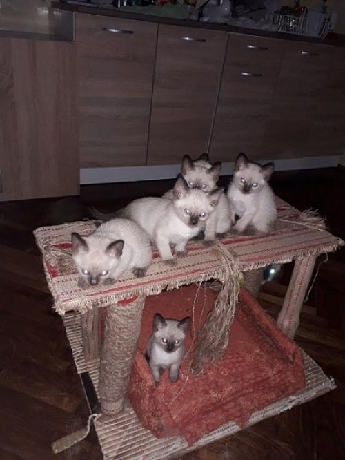 Na prodaju sijamski mačići.Očišceni od parazita,naučeni na posip.Majka ima pedigre.Cena 80€. Kontakt:+381616862294