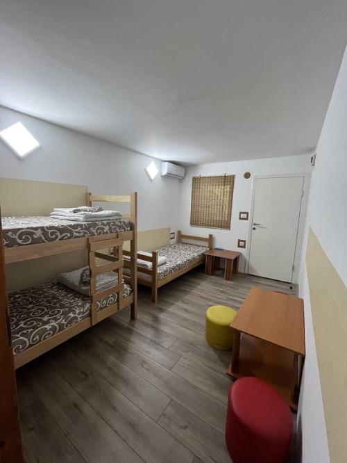 Smestaj se sastoji od vise lezajeva smestenih u cetri sobe i
