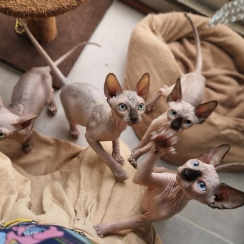 Ovi mačići se uzgajaju u obiteljskoj kući s djecom i psima. Otići će mikročipirani, potpuno zdravstveno pregledani, potpuno cijepljeni i tretirani od parazita. Bit će izloženi svim zvukovima i zbivanjima u kućanstvu kako bi se osiguralo da odu s dobrim rukovanjem i samopouzdanjem. Ažurirat ću oglas kako bebe budu rasle i razvijale se. Mačići su rodovnica sphynx a tata je registriran na tica. kontaktirajte nas na WhatsApp: +4915510086428