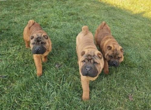 Čistokrvni Šar Pej (Shar Pei) štenci,crvena (mahagoni) i plava(siva)krvna linija, starosti 4 meseca, spremni za preuzimanje. Očišćeni od parazita, uredno vakcinisani, pod stalnim nadzorom veterinara-urađen eye taping.