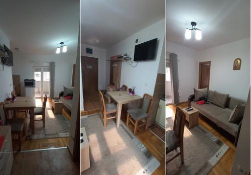 o opremljen apartman je jednoiposoban po strukturi. Sastoji se od dnevnog boravka, kuhinje, spavaće sobe, kupatila i terase. Prostrana dnevna soba sadrži ga