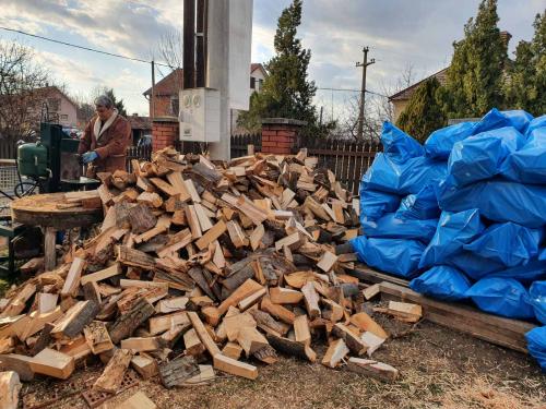 Drva su isecena i iscepana. Sve je spakovano u dzakove kako ne bi upijala vlagu i mogu se drzati zbog toga na otvorenom.