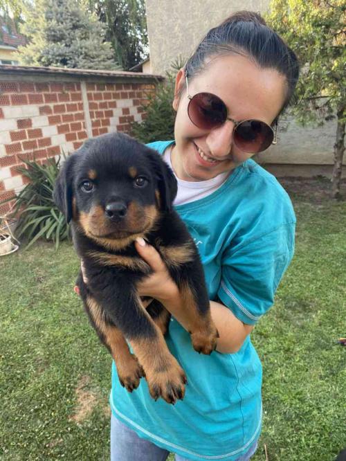 Na prodaju štenci rottweilera(2 mužjaka i 2 ženke) oštenjeni 28.05.2022 šampionskog porekla. Štenci su očišćeni od unutrašnjih parazita i vakcinisani petovalentnom zastitom od(parvoviroze (mačija kuga), štenećaka (Canine distemper virus), zarazne žutice (virusni hepatitis), leptospiroze i influence pasa.) Otac mladi šampion Majka.(/5/CAC, HD-B , ED-O ,JLPP N/N)Štenci su naviknuti na granule Farmina Femili (preporuka da se ne menja hrana dok ne napune 6 meseci radi stomaka) Kontakt 0612422591 Nemanja ili na 0641709405 Mile