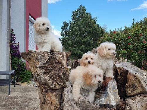 Dostupne Toy aprikot pudle, 3 mužjaka starosti 7 meseci, očišćeni od parazita, vakcinisani, poseduju kompletnu kinološku i zdravstvenu dokumentaciju. Dostupna i 2 mužjaka 2 ženke multipo, 3 meseca stare.