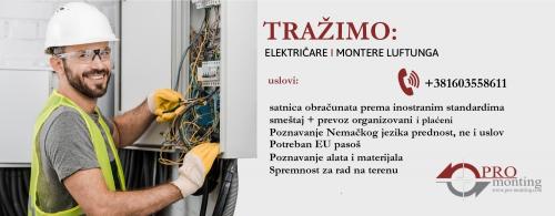 Ako ste električar ili imate iskustva s luftungom, firma Pro Monting Montage d.o.o. sa sedištem u Beogradu i dugogodišnjom tradicijom traži radnike za rad u inostranstvu.