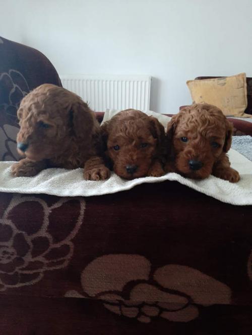 Patuljaste crvene PUDLE, ostenjene 24.1.2023. dva dečaka i jedna devojčica sa papirima rezervacije u toku preuzimanje posle druge vakcine